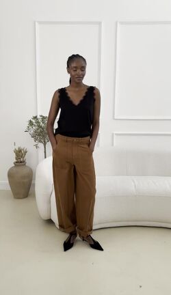 Embrace a more confident silhouette with our Billie Barrel Leg Trousers. Cleverly engineered with narrow vertical front panels to streamline the leg and perfectly positioned bum-lifting back pockets; they bring a wearable take on modern volume. Carpenter pockets lend an authentic casual feel and a rollable hem allows for adjustable leg length. Crafted in 100% cotton in warm camel, they're the perfect neutral to team with everything from our crisp white shirts and easy t-shirts to cosy knits.
