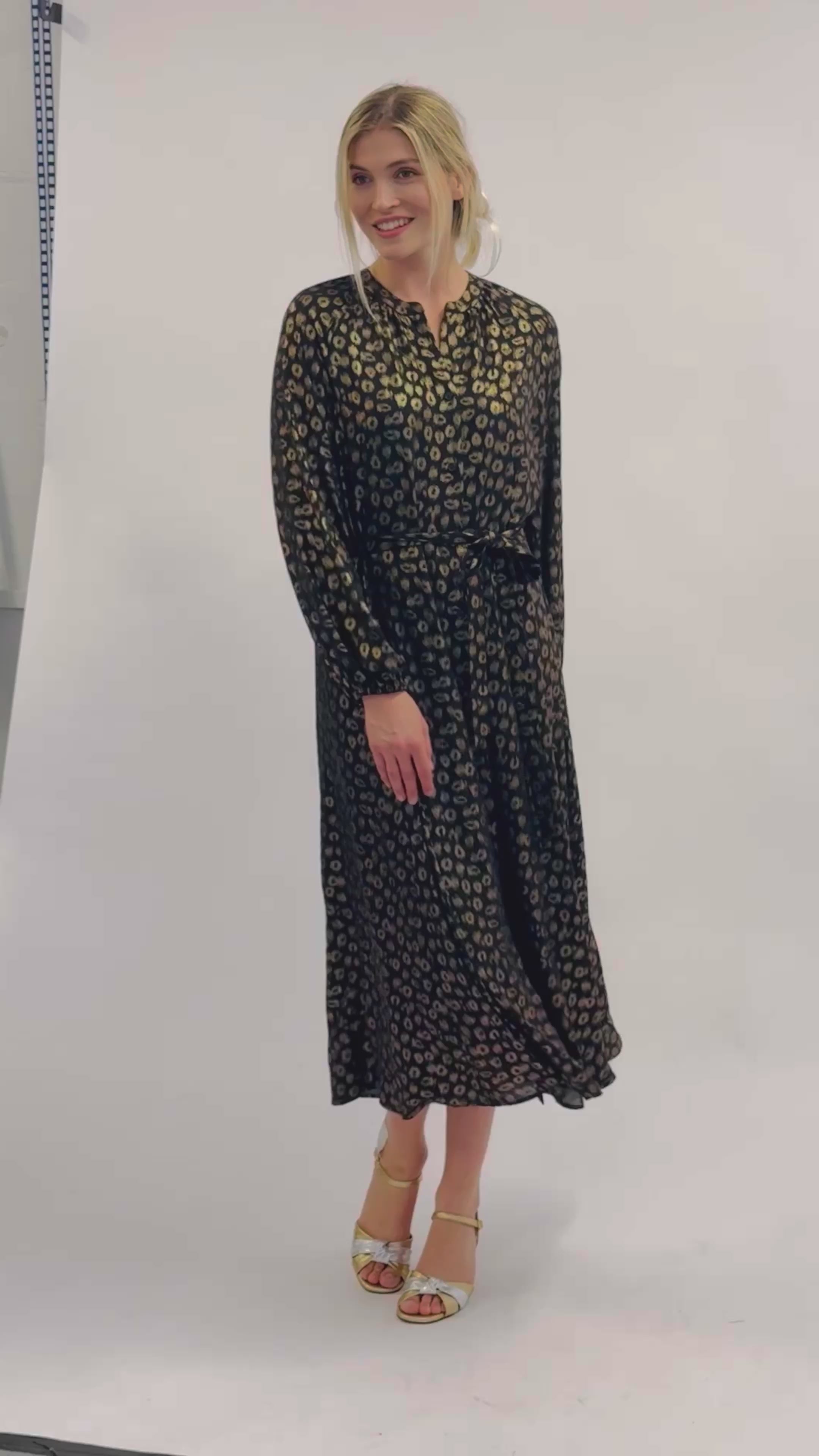 The ultimate dress for party season. We've taken the easy wearbility of the classic shirt dress, added volume for a luxurious relaxed drape and finished with metallic leopard print. The result: one standout dress.